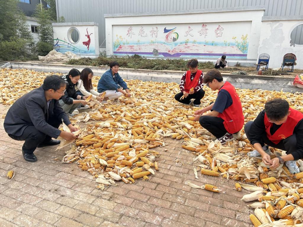 师生党员还开展了环境卫生志愿服务活动,帮助老乡掰玉米、晒大豆,对道路上的落叶、杂草、垃圾进行了清理,以实际行动践行生态文明理念。